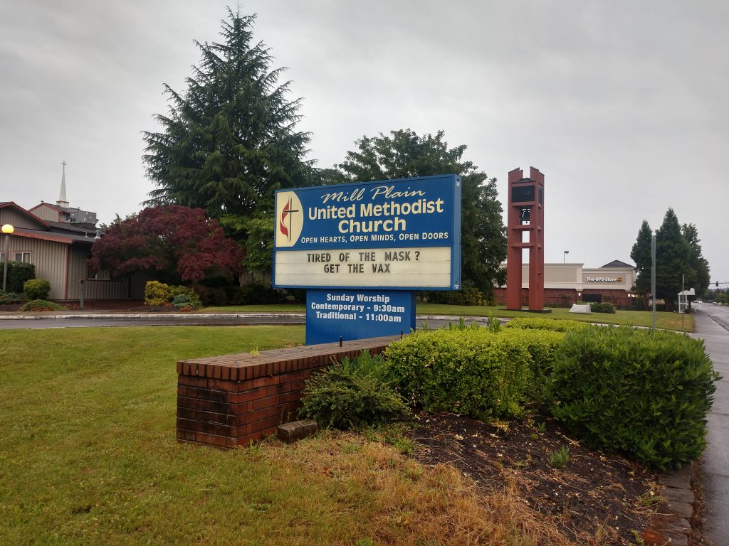 The good new for us now is that infections are still dropping, Washington State has now fully reopened, and Mill Plain United Methodist Church is now open for worship at 10:00 AM, with no reservations required, and fully vaccinated people do not need to mask or practice physical distance. Indeed, getting the vax has lessened the need for the mask. I still tend to wear my mask when I am in a public place, like a grocery store, though I confess I am beginning to forget to do that.