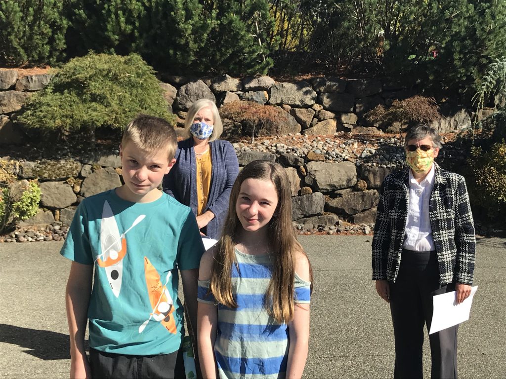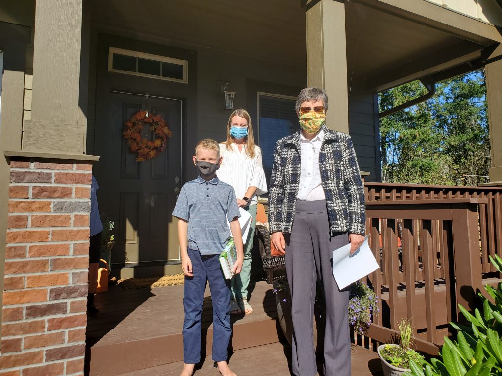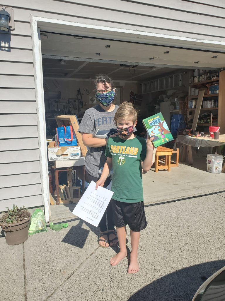 This presentation usually occurs during Sunday service, but with in-person services suspended due to COVID-19, Pastor Sue and Trina Volk made other plans to present Bibles to students this year. They organized a driving tour to five family's homes and held the Bible presentation for six students using socially distance practices.