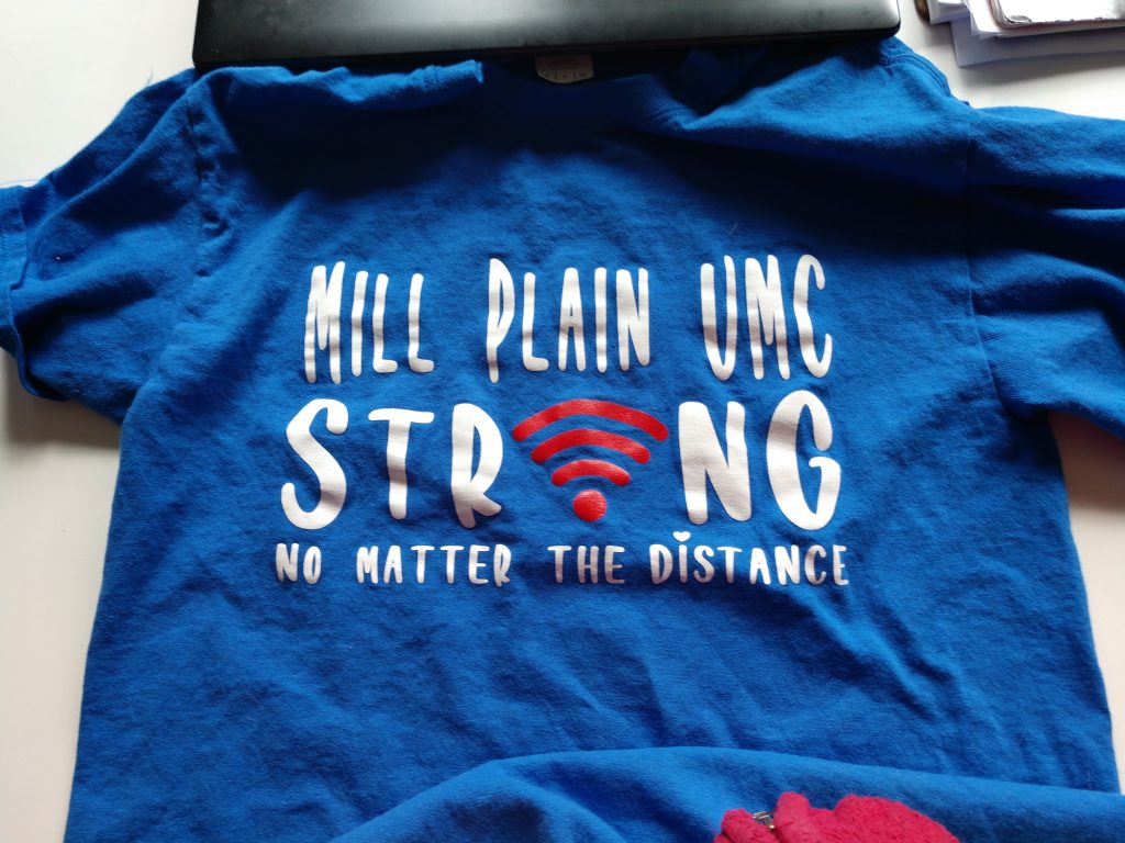 I’m sporting a new t-shirt these days, given to me by Jennifer Meuljik. It says “Mill Plain UMC Strong, no matter the distance.” I love it, not only because it was an unexpected gift, but also because it is true.